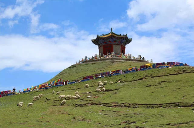 一路前行來到青海農(nóng)牧區(qū)的分界嶺---日月山,日月山是一個(gè)分界點(diǎn),東側(cè)阡陌良田,一派塞上江南風(fēng)光;西側(cè)草原遼闊,牛羊成群,是一幅塞外景色。日月山是宋元各代甘青地區(qū)通往川藏一帶的必經(jīng)之路,也是文成公主經(jīng)日月山赴吐蕃和親形成的唐蕃古道。高原上的日月山,山勢(shì)起伏,峰嶺高聳,在若隱若現(xiàn)的紅土層里,仿佛看到了唐朝文成公主進(jìn)藏和親時(shí),途徑日月山給漢藏人民留下的許多美好的記憶和傳說。