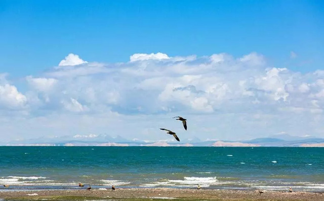 經(jīng)過日月山,到達(dá)青海湖。青海湖又名“措溫布”,即藏語(yǔ)“青色的海”之意,位于青海省西北部的青海湖盆地內(nèi),既是中國(guó)最大的內(nèi)陸湖泊,也是中國(guó)最大的咸水湖。由祁連山的大通山、日月山與青海南山之間的斷層陷落形成。