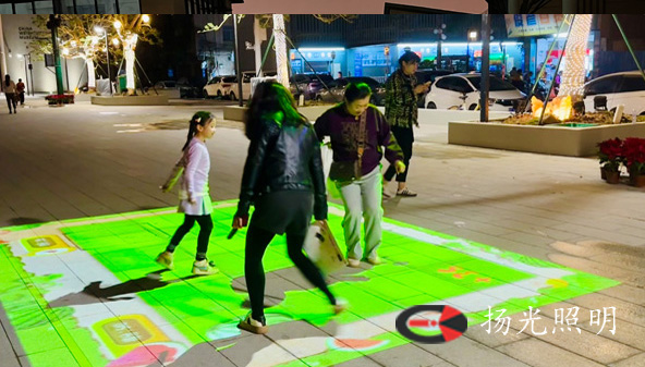 投影互動:利用投影設(shè)備將虛擬元素投射到地面或建筑物上,游客可以通過與虛擬元素的互動來改變燈光效果。例如,游客可以在地面上踩踏虛擬元素,使其消失或變化。